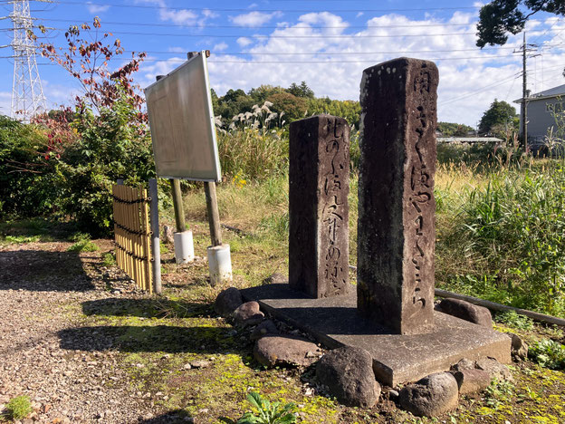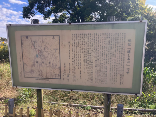 また、街道の面影を残す古道標が二つあり。味のある案内看板の文章が良い感じでした(クリックで拡大します)。文言通り、頭をなでて可愛がりつつ退散。