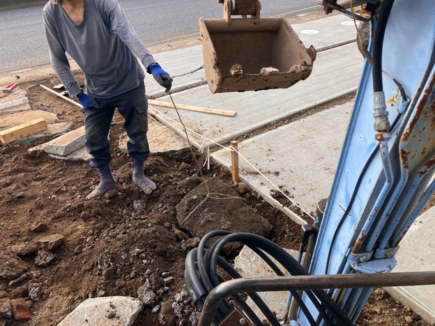 作業範囲は想像以上にガラガラのガチガチで大変!掘れば色んなものが出てきて参った。流れは決まってきたのでよかった。少し日を空けて再び作業に入ります。