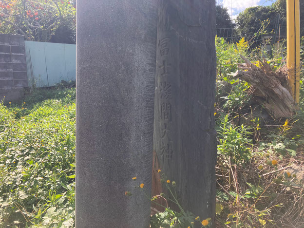 意外とのどかなところで、天気も良いのでお昼に少し散歩しました。みんな大好き(?)ジュズダマ。向こうには、これまたみんな大好きユニモが見える。注意しなければ気付かなそうなところに冨士浅間大神の碑が建っていました。電柱に隠れすぎ。